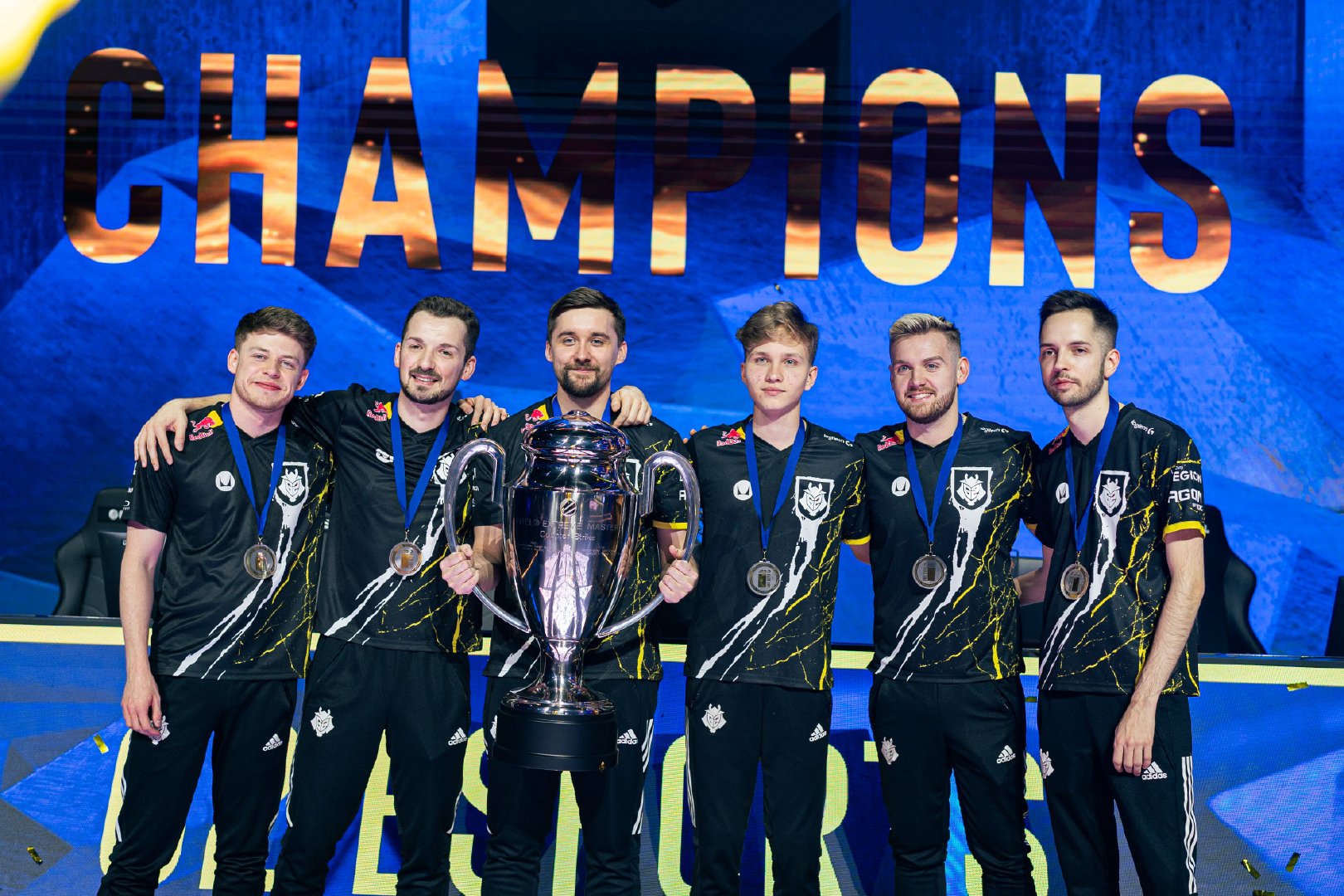 Hooxi的指挥声刚落,G2全员迅速行动,如同一支训练有素的军队。狙击手精准封锁视野,突击手迅速突破防线,支援位紧密跟进。每个队员的动作都精准到毫秒,仿佛心灵相通。对手被这突如其来的攻势打得措手不及,防线瞬间崩溃。随着最后一颗子弹命中目标,G2成功拿下关键一分。全场沸腾,观众们为这精彩一幕欢呼。队员们相互击掌庆祝,眼中闪烁着胜利的光芒。这一刻,不仅是比赛的转折点,更是团队默契与实力的完美展现。