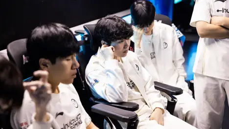 比赛中T1多次出现致命失误:上单传送落地被秒,打野抢龙失败反送人头,中单关键团战技能放空。下路双人组配合脱节,ADC走位不慎连遭击杀。团队决策混乱,优势局不敢开团,劣势局盲目接战。选手操作变形明显,对线期补刀落后,团战站位分散。整体状态持续低迷,沟通协作出现严重问题。